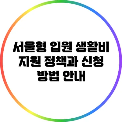 A1: 서울형 입원 생활비 지원 정책은 입원 환자가 치료 중 발생하는 생활비의 부담을 덜어주기 위해 마련된 정책으로, 저소득층 환자에게 지원됩니다.
