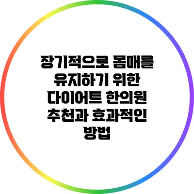 장기적인 건강과 몸매 유지를 위해서는 무엇보다 지속적인 관리와 노력이 필요해요. 다이어트 한의원에서 제공하는 다양한 치료 방법을 통해 개별 맞춤형 케어를 받으면서, 건강한 생활습관을 들여보세요. 몸과 마음 모두 건강해질 수 있도록 의지를 다져야 해요. 오늘부터 한 발짝 더 나아가 보세요!