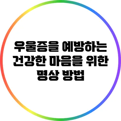 명상은 우울증 예방을 위한 효과적인 방법입니다. 특히 꾸준한 실천과 올바른 방법을 통해 마음의 평화를 찾고 우울증을 미리 예방할 수 있어요. 하루 몇 분이라도 명상하는 시간을 가져보세요. 그 작은 변화가 큰 결과를 가져올 수 있다는 점을 잊지 말아요!