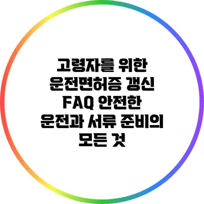 고령자가 운전면허증을 갱신하는 과정은 그들의 안전 운전뿐만 아니라, 도로 위의 모든 운전자의 안전을 고려해야 하는 중요한 절차예요. 이 글에서는 고령자를 위한 운전면허증 갱신에 대한 FAQ를 통해, 필요한 서류부터 주의사항, 절차까지 자세히 알려알려드리겠습니다.