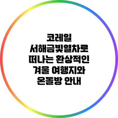 겨울이 다가오면 많은 사람들은 따뜻한 온돌방에서 쌓인 눈을 바라보며 아늑한 여행을 꿈꾸게 돼요. 특히, 코레일 서해금빛열차는 이 계절에 더없이 멋진 여행 경험을 알려알려드리겠습니다. 이번 글에서는 서해금빛열차의 주요 매력과 함께 겨울 여행지 추천 및 온돌방에 대한 내용을 깊이 있게 알아보려고 해요.