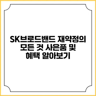 SK브로드밴드는 한국의 대표적인 통신 회사 중 하나로, 다양한 인터넷, TV, 전화 서비스를 제공합니다. 이 회사는 고객의 만족도를 높이기 위해 지속적으로 다양한 상품과 서비스를 개발하고 있으며, 재약정은 이러한 고객 유치를 위한 한 방법이랍니다.