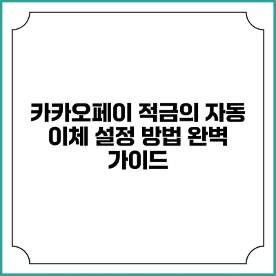 ✅ 카카오페이 적금의 자동 이체 설정 방법을 알아보세요!