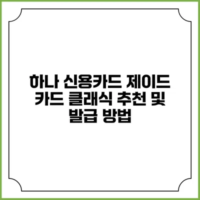 하나 신용카드 제이드 카드는 많은 소비자들에게 인기 있는 선택이랍니다. 이 카드는 다양한 혜택을 제공하며, 발급 과정도 간단해서 많은 분들이 사용하고 계시죠. 이번 글에서는 제이드 카드 클래식에 대한 추천 및 발급 방법을 함께 알아보도록 할게요.